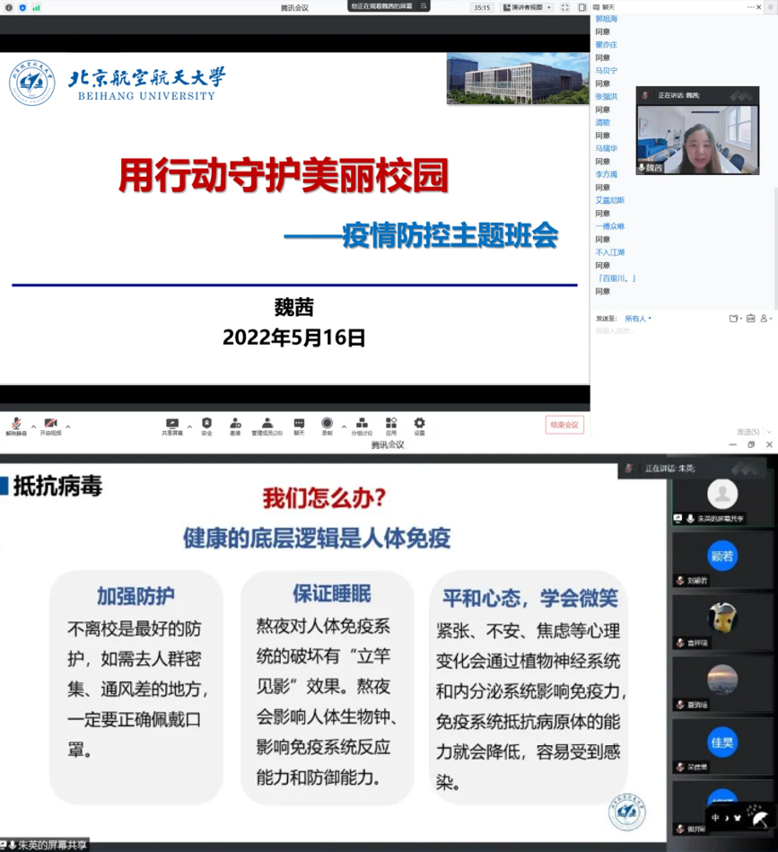 pp电子模拟器官网班主任、辅导员以“共克时艰,守护美丽校园”为主题面向学院全体学生召开班会,发出拒绝外卖、减少快递、守护美丽校园的倡议,将学校的暖心举措详细告知同学们。同学们纷纷表示,大爱暖心北航,要用行动守护美丽校园。