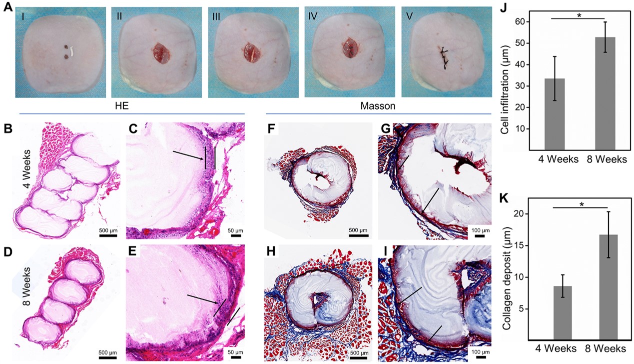 总之,该工作为构筑新型可拉伸组织修复生物材料提供了新思路,这种新型工程支架材料有望在再生医学、运动医学、野外及战场应急治疗等领域得到进一步的应用。