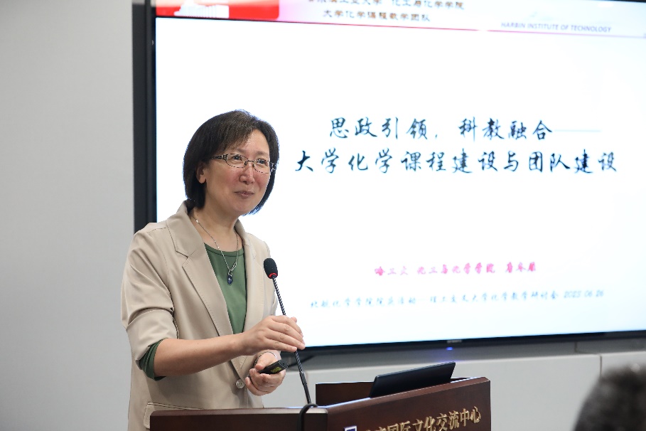 随后,哈尔滨工业大学教学带头人、国家级一流课程负责人唐冬雁教授作“思政引领,科教融合——大学化学课程建设与团队建设”主题报告。传承“配角当作主角唱”思想,在哈尔滨工业大学领导的支持下,大学化学教学团队对课程建设不断进行改革创新,通过重组师资和队伍,重建教学运行与管理模式,重构课程体系与教学内容,重塑教学模式和实施方法,重调考评方式和考评内容,在大学化学课程建设中取得了一些成绩,分享了成功经验,并强调课程改革与建设一直在路上。