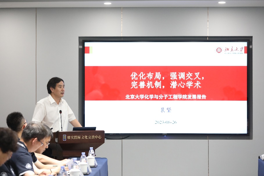首先,北京大学化学与分子工程学院党委书记、国家教学名师裴坚教授进行“优化布局强调交叉完善机制潜心学术”主题报告。裴坚教授首先对北航pp电子模拟器官网十五周年表示祝贺。秉持“核心下沉,两翼张开,布局AI化学、新化工”发展理念,北京大学化学与分子工程学院对人才制度不断进行创新改革,坚持基础学科贯通式人才培养目标,营造浓厚学术氛围,增强产学结合。