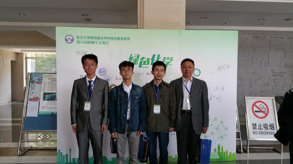 4月22日上午,pp电子模拟器官网高秋明教授带领2014级本科生苗伟宁、蓝昊和杨焱参加了武汉大学举办的第四届“化学科技创新文化节”部分高校师生交流会。此次交流会共有来自吉林大学、南京大学、哈尔滨工业大学、武汉大学等18所高校本科生队伍参与。