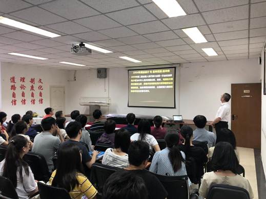 高宁老师以“谈谈理论学习的概念问题”为主题,以学习宪法为例,生动地展示了理论学习如何在学懂和弄通上下功夫。他从建国以来的几次宪法修改讲起,结合历史和现实、理论和实践,让大家对这次宪法修改中“取消国家主席任期限制”及“增加坚持和平发展道路,坚持互利共赢开放战略”等条款有了更加系统、全面、深刻的认识。