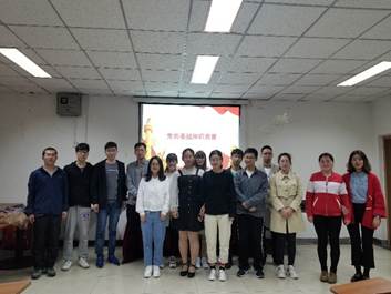 为深入学习贯彻习近平新时代中国特色社会主义思想和党的十九大精神,学习“两会”精神,学习领会习近平总书记在学校思想政治理论课教师座谈会上的重要讲话精神,推进“两学一做”学习教育在学生团体中落实,以饱满的精神面貌喜迎新中国成立70周年,SY1827党支部于2019年4月27日举办了党的基础知识竞赛活动,并邀请了SY1727党支部部分同志、入党积极分子等同学参与活动。