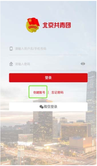 用户通过“青春北京”菜单栏进入系统后,点击“我的”按钮,出现登录页面。