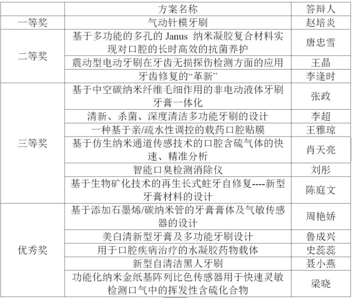黑人牙膏创新挑战赛奖学金旨在鼓励化学院研究生发散思维、创新思想,关注口腔护理问题,结合自身的专业特色,提出有建设性意见的畅想。本届挑战赛共有32组66位同学参与,经过海选、初赛的激烈角逐,共有15组同学的优秀方案入围了最后的决赛。