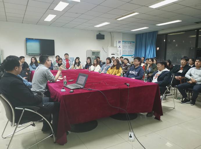 刘发顺师兄毕业就职于国企,师兄简要介绍了一般国企的薪资待遇状况,以及面试时可能会遇到的问题和我们需要具备一定的应急能力。师兄推荐了一些找工作的渠道,包括网站,公众号等,同时,特意强调了在国企面试前、面试中、面试后需要做的准备和反馈。